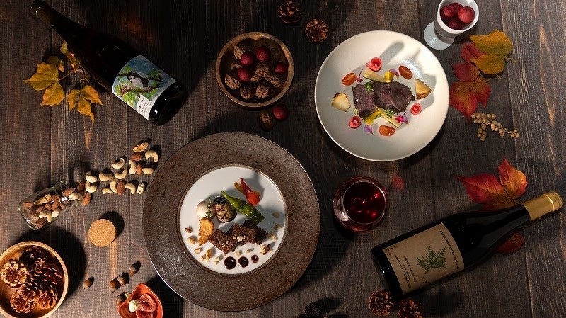 今年リニューアルした森の音diningで秋のサスティナブルディナーコース「子リスと秋の収穫祭」を提供。