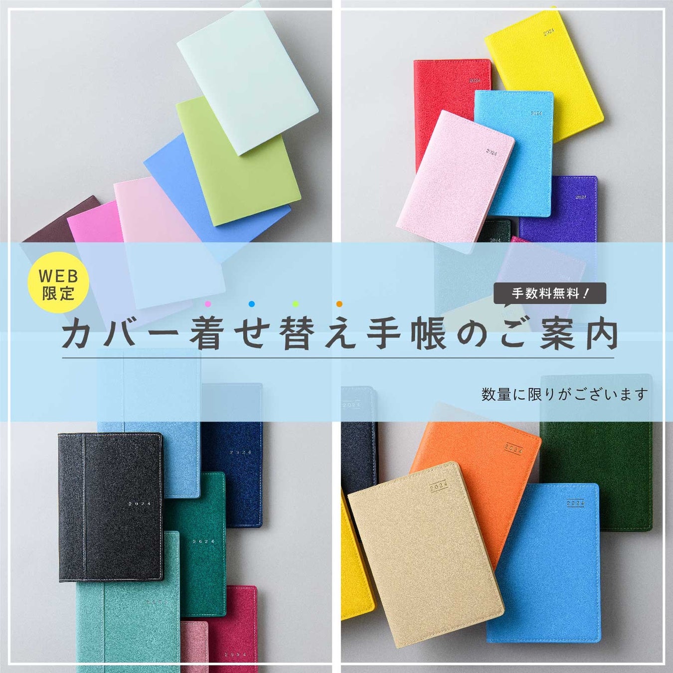 2023年版1月始まり手帳より始まった、高橋書店ECサイトからの購入限定のカバーの着せ替えや名入れサービス。大変好評につき、2024年版1月始まりではカバーの着せ替えが選べるシリーズが増えました。torincoシリーズでは店頭にはない限定色のカバーも選ぶことができます。またカバーへの名入れサービス(1冊550円)も4→8種類へ、選べるフォントが増えました。自分だけのオリジナルの手帳をつくってみてはいかがでしょう。