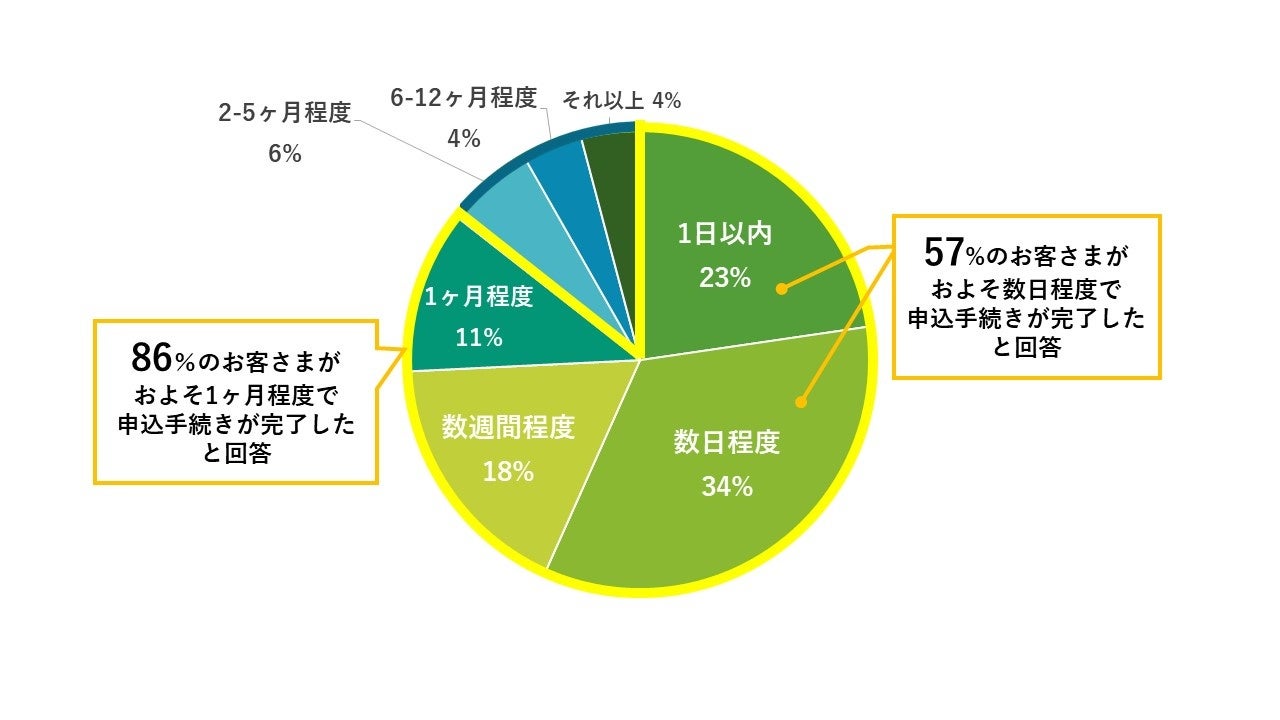 Q. ライフネット生命で保険の検討を開始してから、申込手続きが完了するまで、どの程度時間をかけましたか。 |