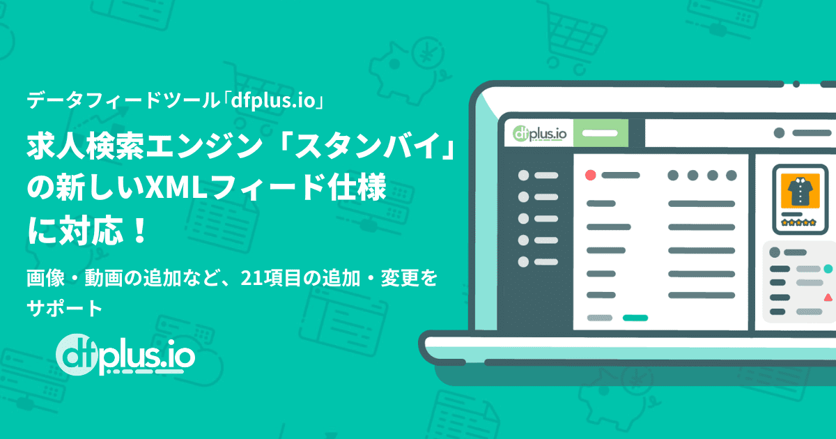 データフィード管理ツール「dfplus.io」、 求人検索エンジン「スタンバイ」の新しいXMLフィード仕様に対応!画像・動画の追加など、21項目の追加・変更をサポート