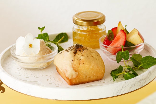 麗らかな陽だまりのように安らぐ「ホワイトティー」の香りからインスパイア。心までも安らぐ香りや食感を楽しめる、スコーンとフルーツのプレート。