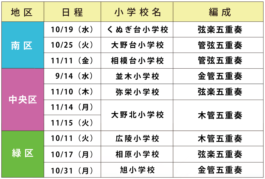 相模原市民文化財団と相模原音楽家連盟による「学校訪問授業」