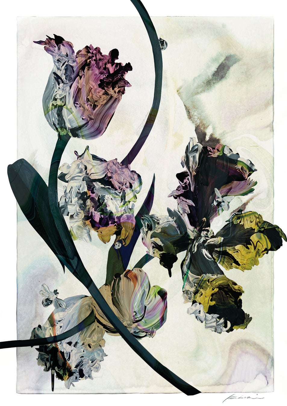 すべての生命体には意識のある記憶とDNAに刻まれた無意識の記憶があり、それらが混じり合って実体が現れる。そこから記憶が更新され、変化や進化が起きていく生態を独自の着色法で抽象的に描いています。