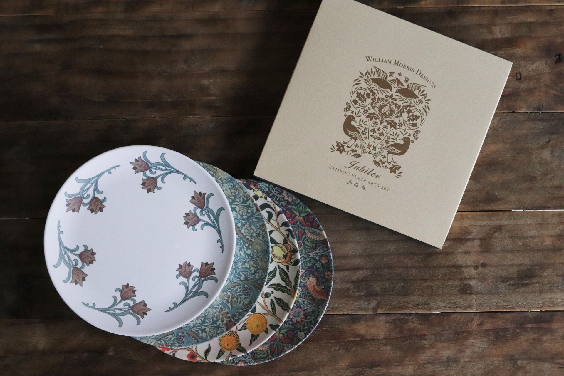 エコで丈夫なバンブー素材を使用した モリス柄プレート4枚組、コップ4個セット など