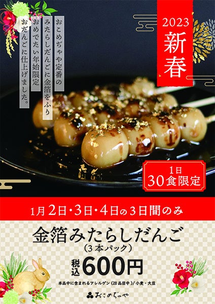 - 1月2日~4日の3日間・1日30食限定!豪華な金箔みたらしだんご