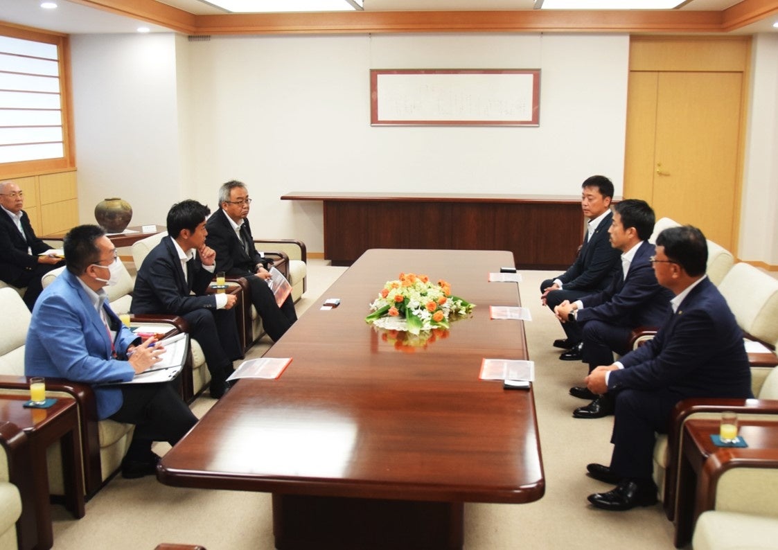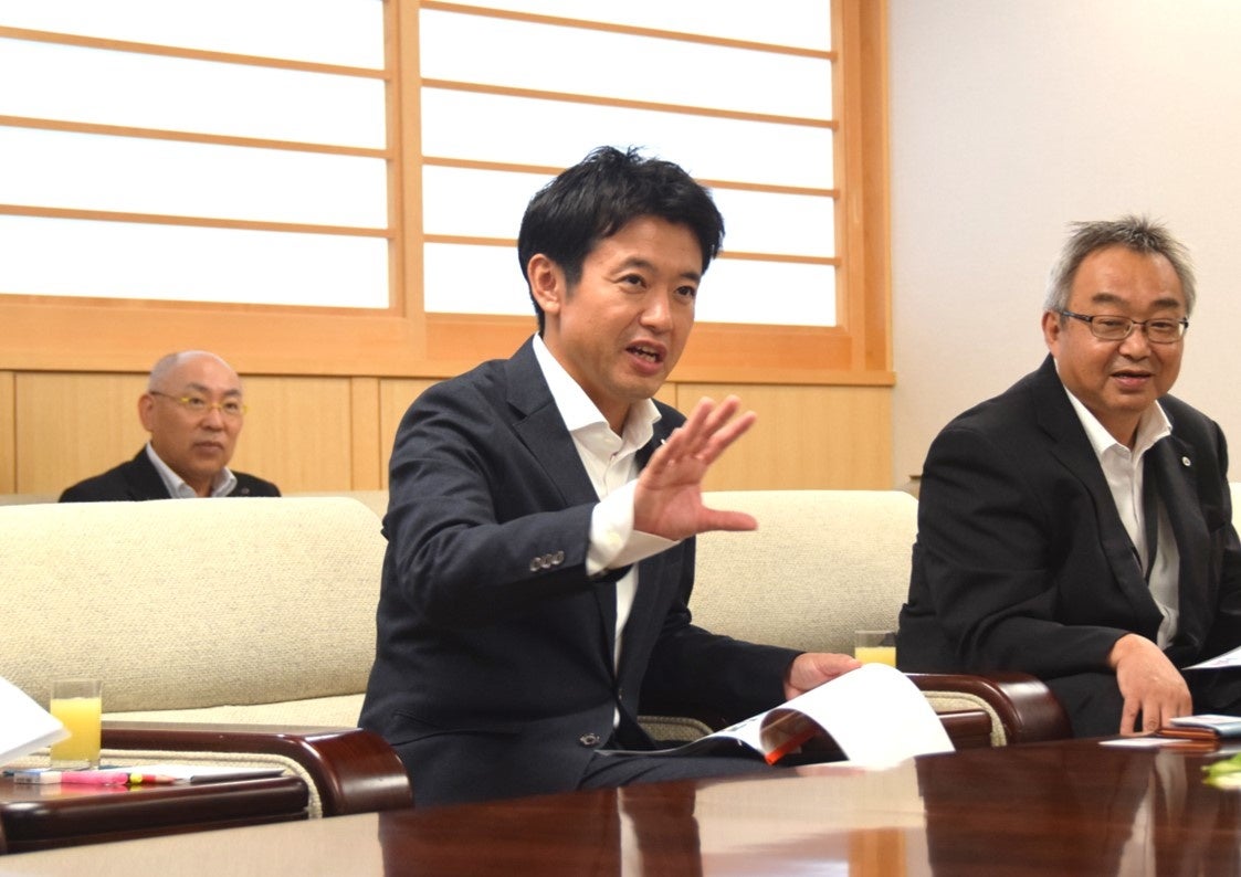 【出席者】<青森県> 知事 宮下 宗一郎 様、<当社> 代表取締役社長 谷村 広和、執行役員 営業本部長 舘 隆一郎、青森営業部長 中村 誠悦