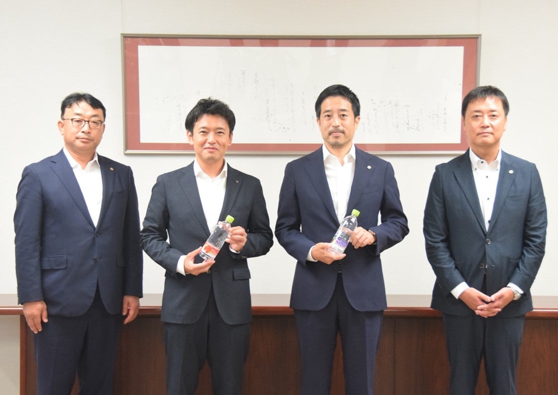 「県内ではこれまでも、この協定に基づいて多数の飲料を避難所等へ配送いただいております。また、前職のむつ市長時代には、新型コロナウィルスワクチンの集団接種会場でも製品をご提供いただくなど、日ごろから社会貢献活動としてさまざまな自治体と取り組まれていることを、改めて感謝申し上げます。地域に多く事業所を持つ貴社は、飲料に関しては無限のポテンシャルがあると信じておりますので、万が一の際にも大変心強く、今後とも頼りにさせていただきます。」