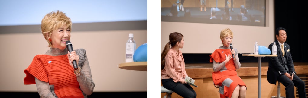 従業員向けのトークイベント「一緒に考えようあなたと家族の健康のこと」では、瀬川瑛子氏、山本譲二氏と、マツダ病院 消化器内科 部長 医学博士の長沖祐子氏が登壇し、肝炎やがんなどの病気の怖さや健康でいる事の大切さを訴えました。