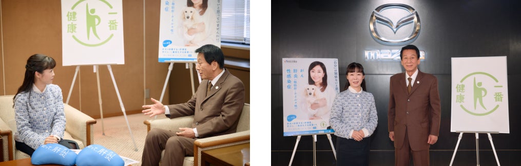 2025年1月23日(木)に厚生労働省 特別健康対策監の杉良太郎氏と、同省「知って、肝炎プロジェクト」スペシャルサポーターの瀬川瑛子氏と山本譲二氏が広島県に本社を構える大手自動車メーカー「マツダ株式会社」と「マツダ病院」を訪問しました。