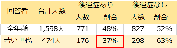 ○39歳以下の約4割の方が、「後遺症があった(ある)」と回答されています。