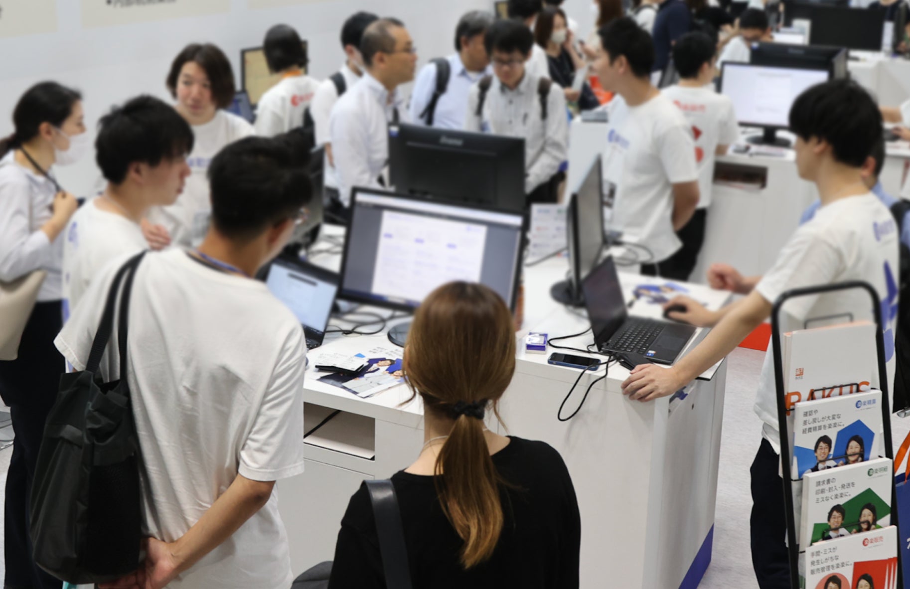 東京ビッグサイトを埋め尽くすほどの出展社ブースが並び、企業の担当者様が自社製品の魅力を伝えます。ビジネスシーンで活用できる画期的なサービスやシステムが集結し、企業が直面しているさまざまな課題を解決する製品やサービスを実際に比較検討できる場となりました。