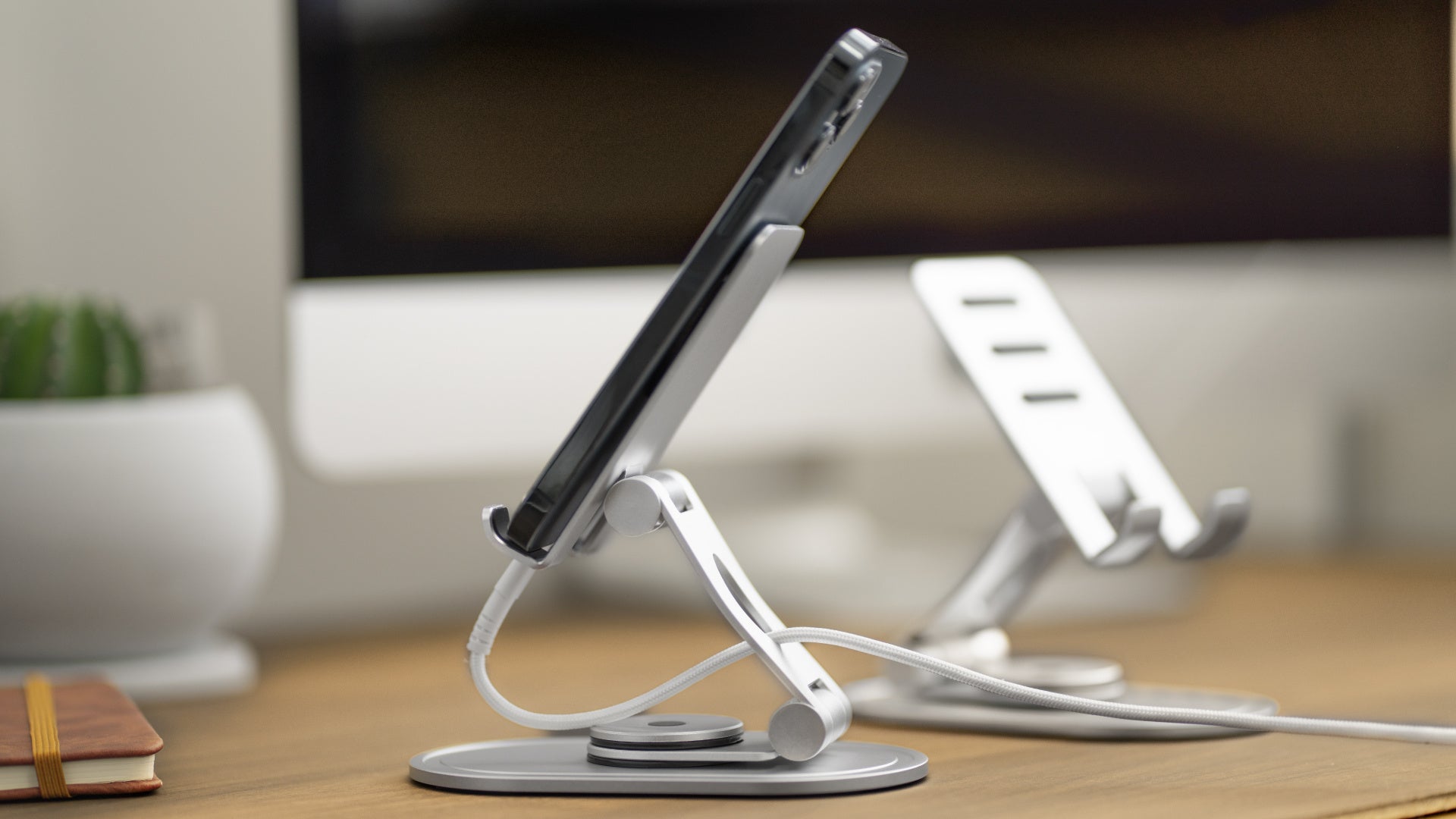 見たい向きに自由自在に360°回転!コンパクトな回転式アルミスタンドを発売