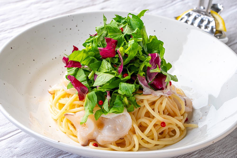 ○食感も柔らかく甘い北海道産タコと、北海道産たらこを使い、海の恵みを楽しめるパスタ