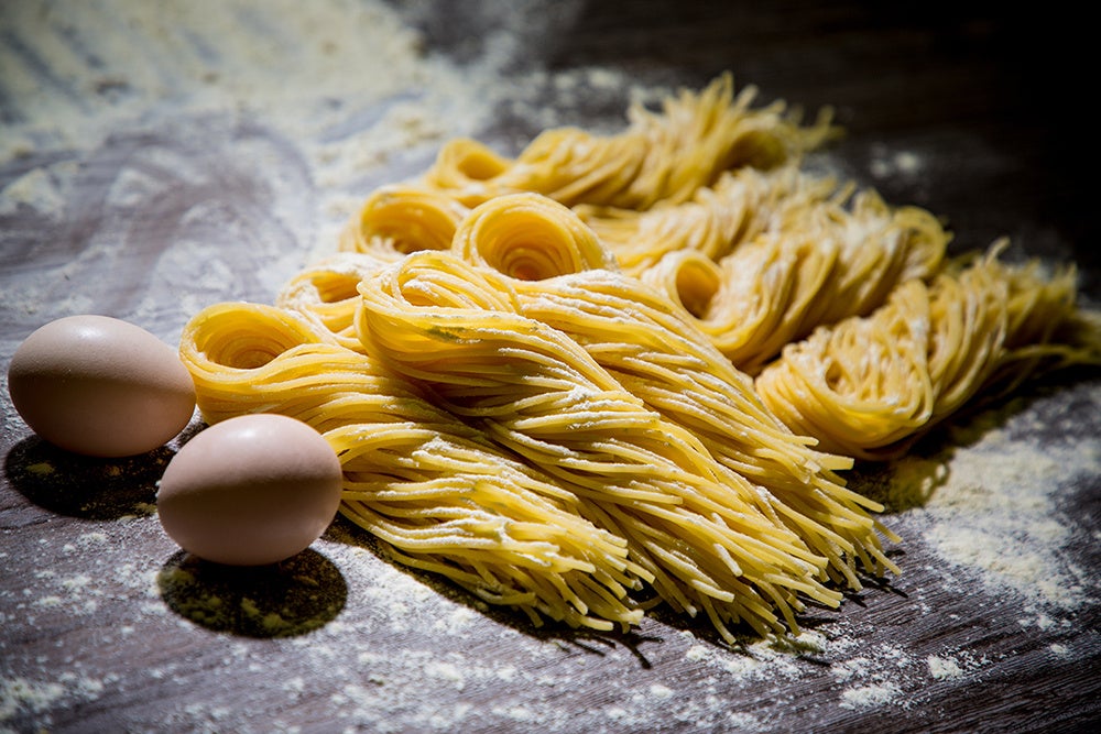 食べた瞬間に感じる「ツルッ!」「モチッ!」とした新食感は、下川六〇酵素卵と北海道小麦のオリジナルブレンドをW真空製法で店内製麺することで実現しました。北海道のブランド卵「下川六〇酵素卵」と、北海道小麦とデュラム小麦でつくられ風味豊かに仕上がる生パスタは鮮度にもこだわっています。