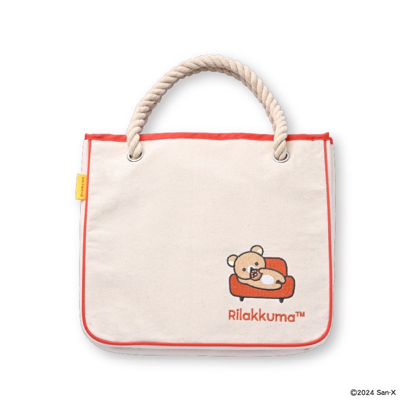 「オリジナルパイピングバッグ」は、リラックマの刺繍とパイピング、ロープハンドルがアクセントになった、キャンバス生地のバッグです。カラーは、シンプルでファッションに合わせやすいグレー、ベージュ、ネイビーの3色展開。また、アクセントとなるよう内生地に総柄を使用しており、内ポケットも付いているため、おでかけにぴったりのアイテムです。