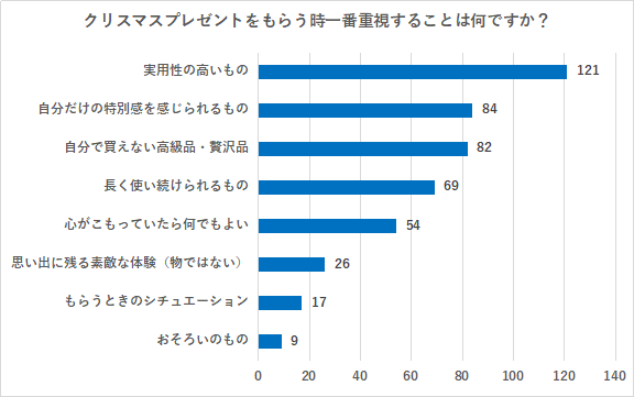 みんながクリスマスプレゼントをもらう際に一番重視することは、「実用性」でした。