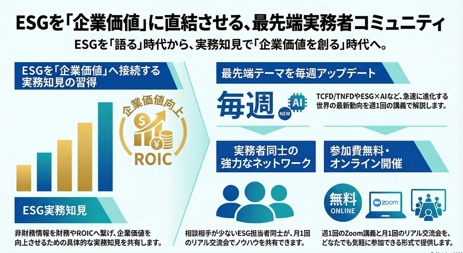 ― ESG担当・経営企画・IR向けに週1回オンライン講義を無料提供 ―