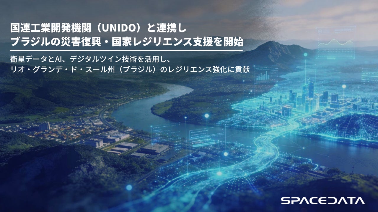 株式会社スペースデータ(本社:東京都港区、代表取締役社長:佐藤 航陽、以下スペースデータ)は、国連工業開発機関(UNIDO:United Nations Industrial Development Organization)と契約を締結し、ブラジル連邦共和国リオ・グランデ・ド・スール州における洪水被害からの国家レジリエンスの向上および防災能力の強化を目的とした「デジタルツイン構築および洪水シミュレーション開発」に着手したことをお知らせいたします。