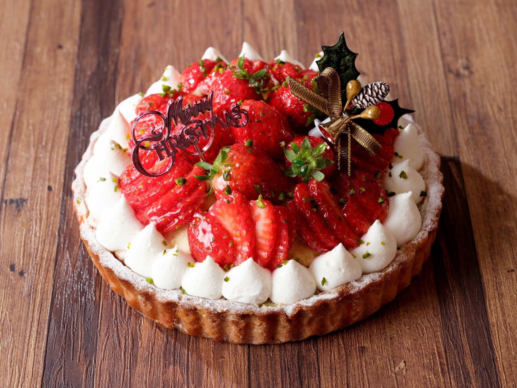 さっくりと香ばしいアーモンドタルト生地に、国産苺をたっぷりと贅沢に。果実の甘酸っぱさが口いっぱいに広がる、鮮やかで華やかなクリスマスタルトです。