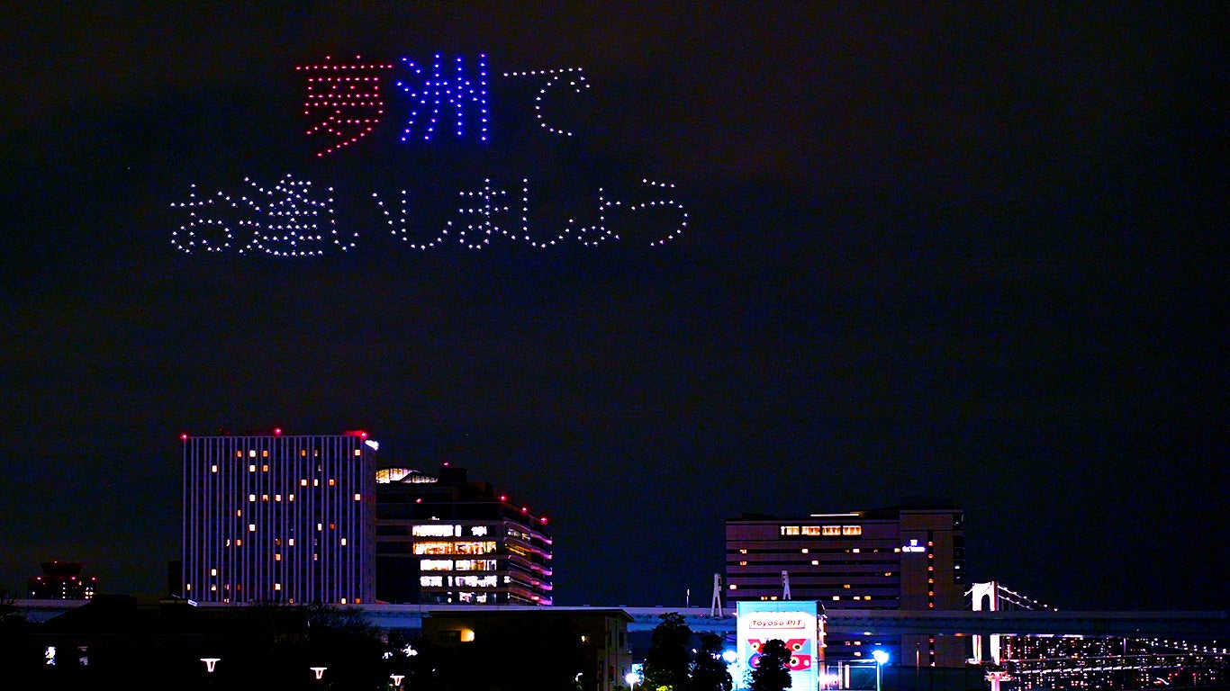 豊洲の夜空に輝いた万博公式キャラクター・ミャクミャク!大阪・関西万博開幕直前スペシャルドローンショー盛況のうちに閉幕