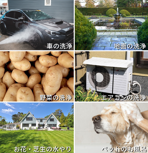 また、洗車、お花・芝生の水やり、野菜、ペット、屋外の壁・ガラスの洗浄など、様々なシーンで大活躍!
