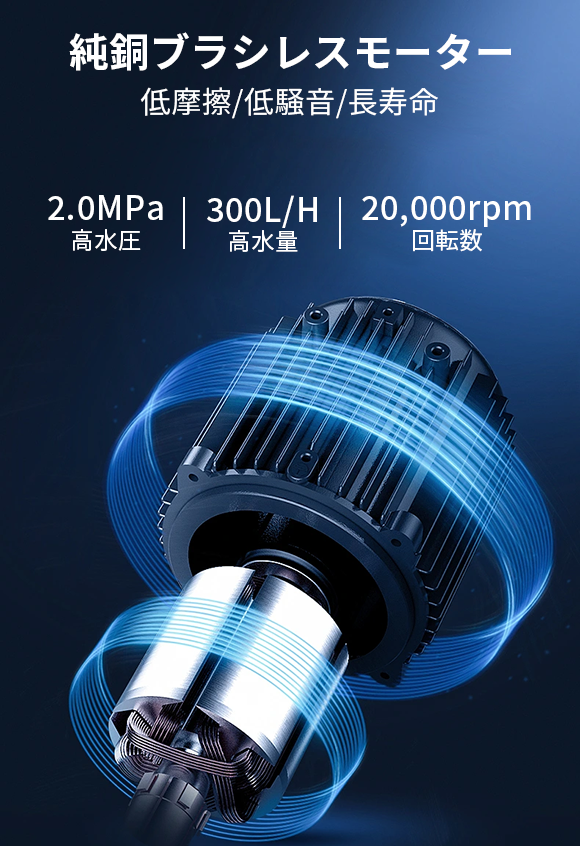 2MPaの高水圧!さらに300L/hの大水量で、落としにくい頑固な汚れも一気に洗浄。