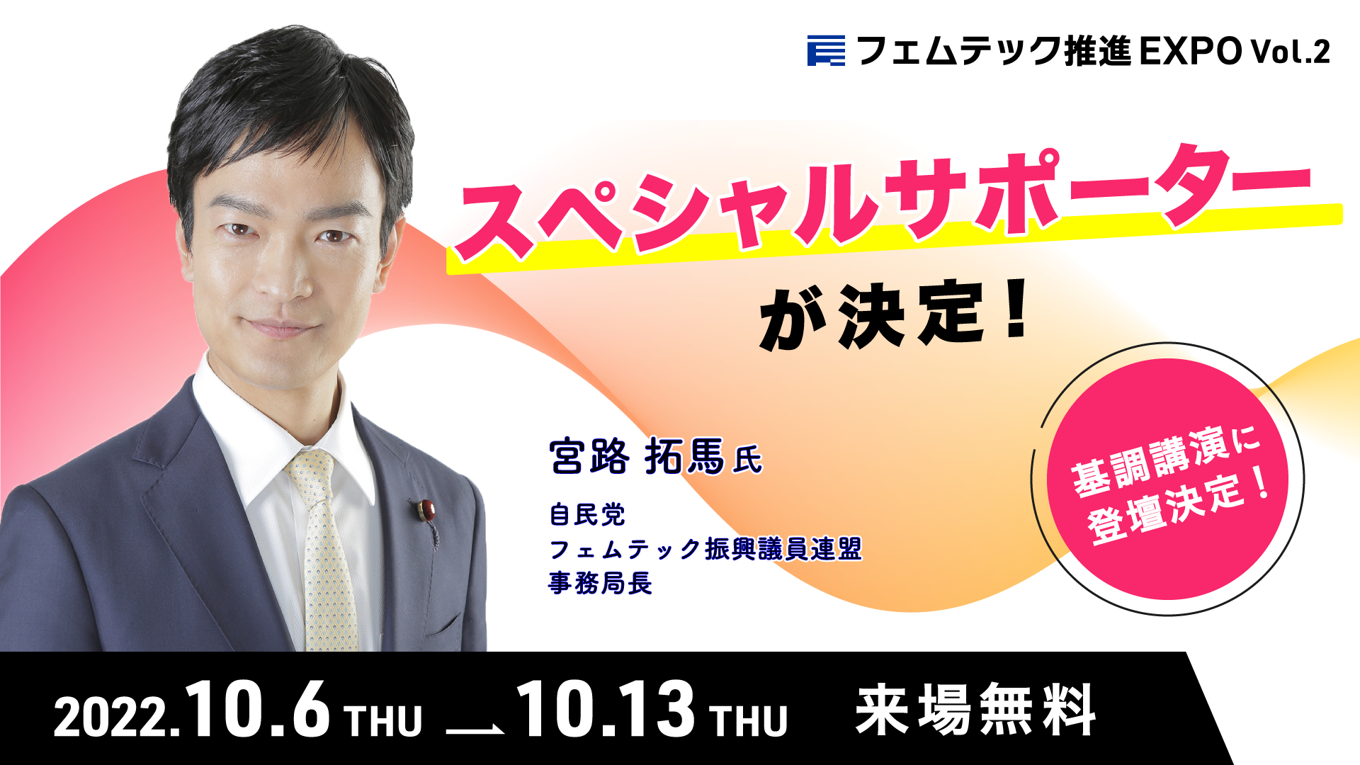 - フォーリンラブ バービーさん、フェムテック振興議員連盟事務局長 宮路拓馬議員など豪華登壇者が決定!