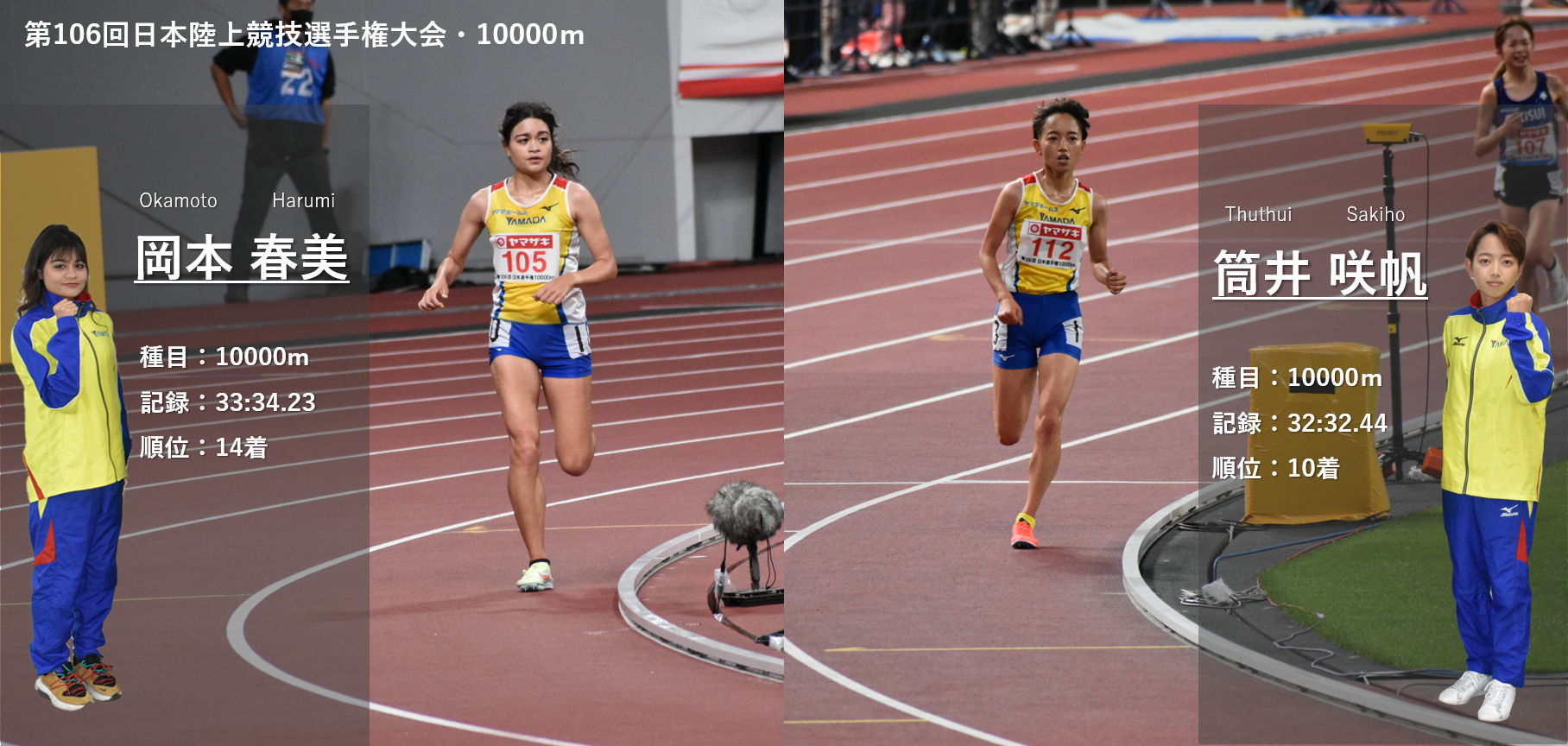 2022年5月7日(土)、東京都新宿区で開催された「第106回日本陸上競技選手権大会・10000m」にヤマダホールディングス陸上競技部所属の筒井咲帆 選手、岡本春美 選手が出場いたしました。19時44分よりスタートした女子10000mに出場し、10着と14着の結果でした。
