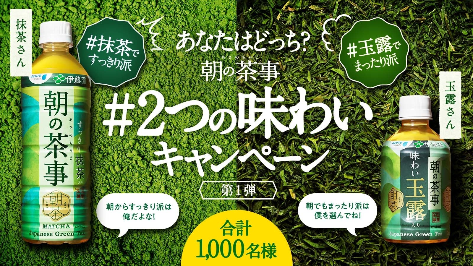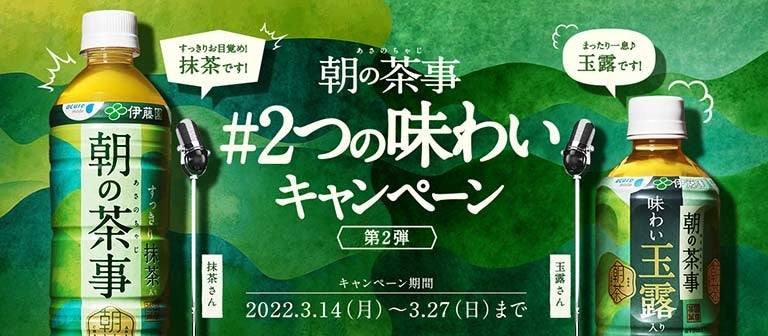 朝の茶事 #2つの味わいキャンペーンを開催!第一弾は3/1~TwitterCP、第二弾では声優 石川界人さんが演じる「抹茶さん」「玉露さん」のおしゃべりが楽しめる!