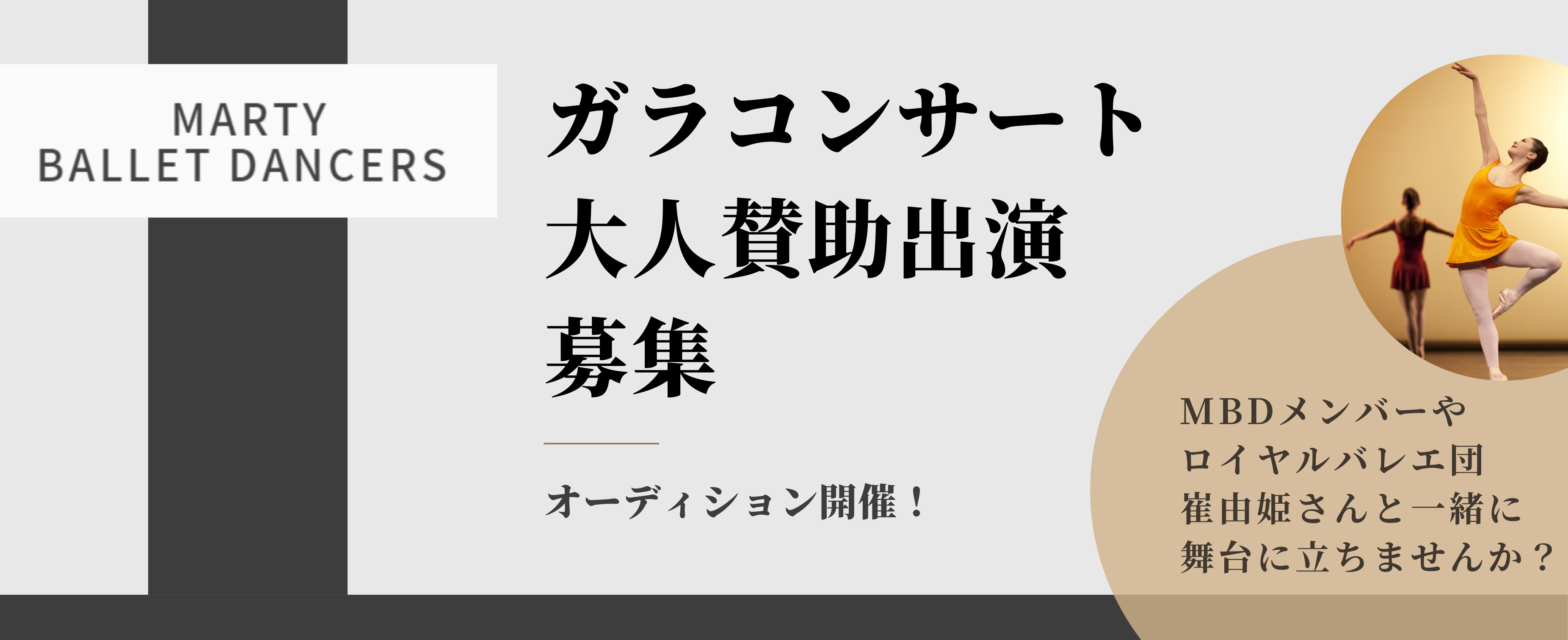 せっかくのこの機会、スペシャルゲストと共演できるのがMBDメンバーだけでなく、日頃からバレエをこよなく愛する大人ダンサーの皆さんにも共演していただきたい!