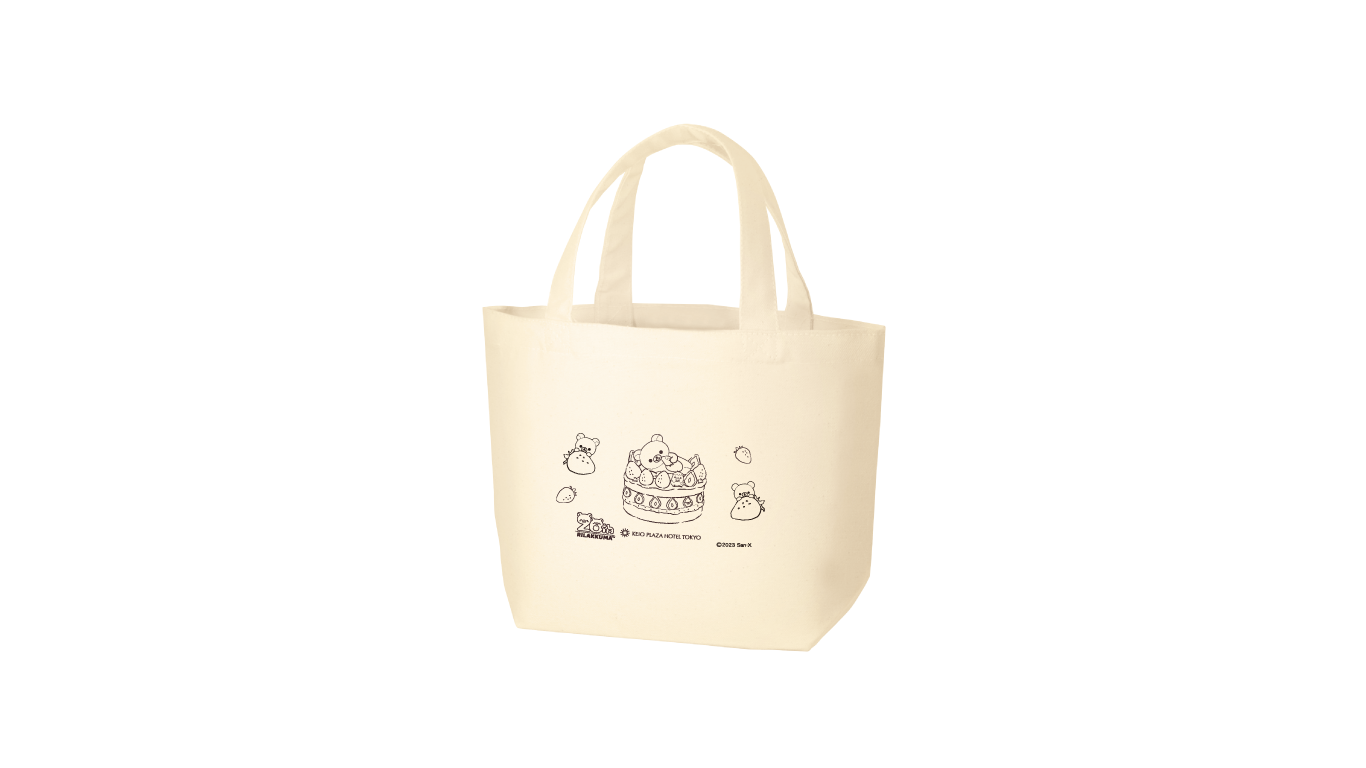 今回のイベントを記念して、リラックマのイラストロゴが入ったトートバッグが付いたプランを、平日・数量限定でご用意いたします。イラストロゴは、リラックマ20周年のマークも入ったかわいらしいデザインです。温かみのあるコットン生地のトートバッグは、お買い物などにもおすすめです。