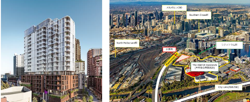 本プロジェクトは、州政府が再開発を推進してきたメルボルン市・ドックランズ地区に位置します。大型複合商業施設に直結し、都心には約10分でアクセス可能と、同地区随一の生活・交通利便性を有しています。さらに、エネルギー効率の高い住宅設計により、二酸化炭素排出量の「ネットゼロ」を目指しており、環境負荷の低減を図りながら、住宅不足の解消に貢献します。