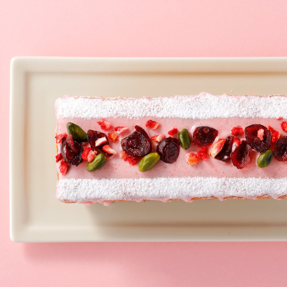 さらに、ワインとスパイスにじっくり漬け込んだクランベリー、大粒のピスタチオ、そしてフリーズドライの苺をふんだんにトッピングしました。