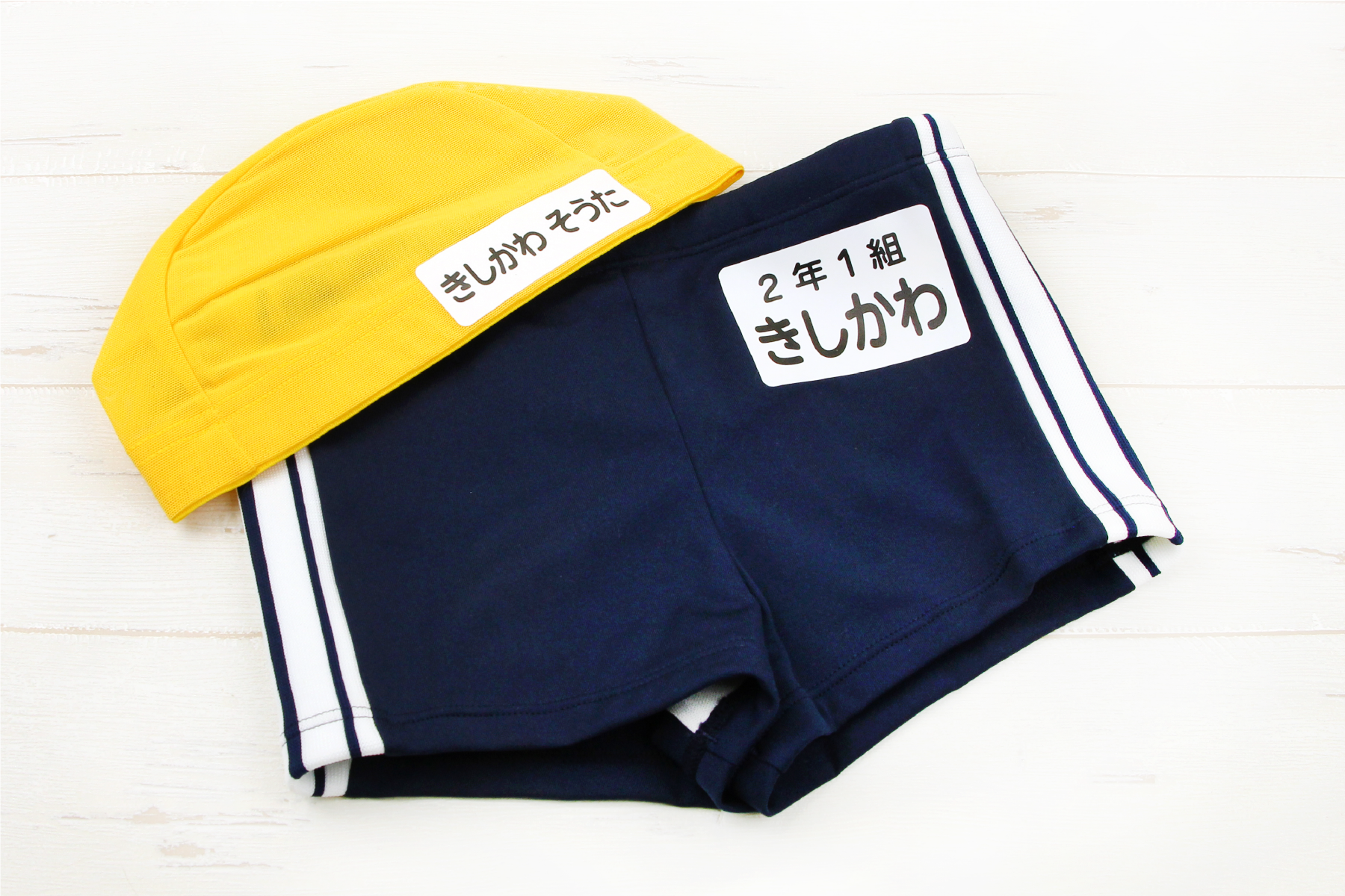 油性ペンで書くとプールや洗濯のたびに文字が薄くなることがありますが、本商品は特殊プリントで制作しているため名前が色あせません。