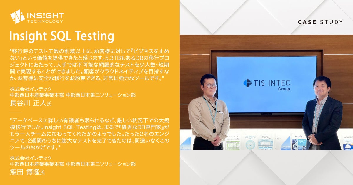 SQLテスト自動化ソフトウェア「Insight SQL Testing」が、わずか2名のエンジニアによる2週間での網羅的なテストを実現、安全な移行作業を可能に