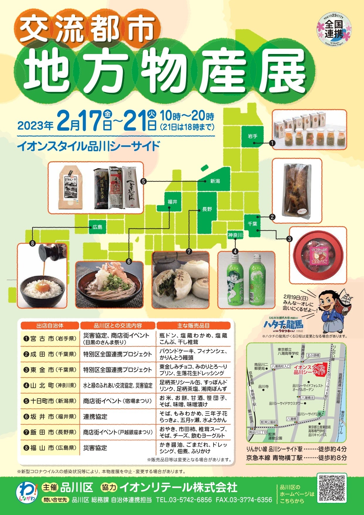 品川区は2月17日から、イオンスタイル品川シーサイド(品川区東品川4)地下1階催事場で「交流都市地方物産展」を開催します。