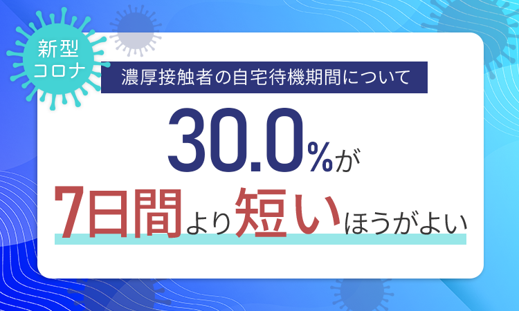 【新型コロナ】濃厚接触者の自宅待機期間について、30.0%が「7日間より短いほうがよい」