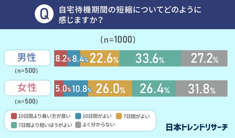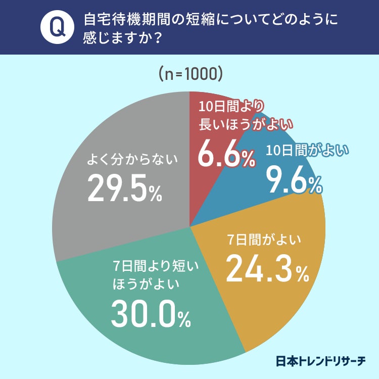自宅待機期間が7日間に短縮されたことについて、24.3%の方が「7日間がよい」と回答しました。