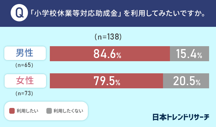 「小学校休業等対応助成金」を利用してみたいか聞きました。
