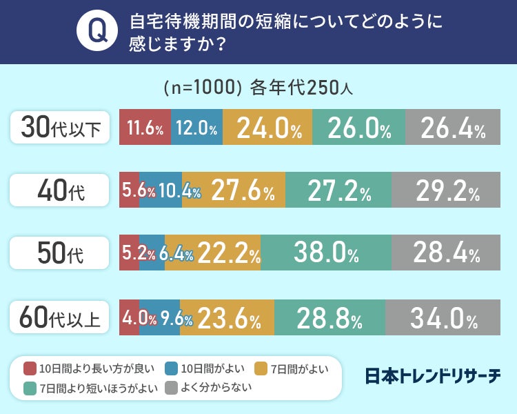 30代以下では「10日間より長いほうがよい」「10日間がよい」と回答した方がそれぞれ10%を超えました。