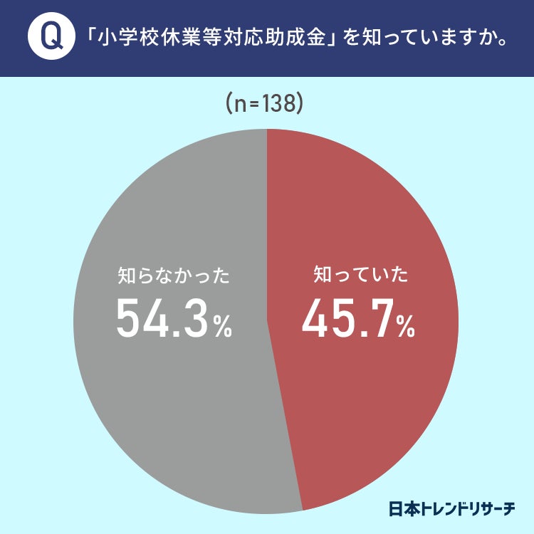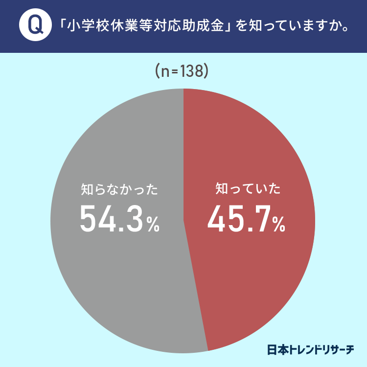 半数以上の方が「小学校休業等対応助成金」を「知らなかった」と回答しました。
