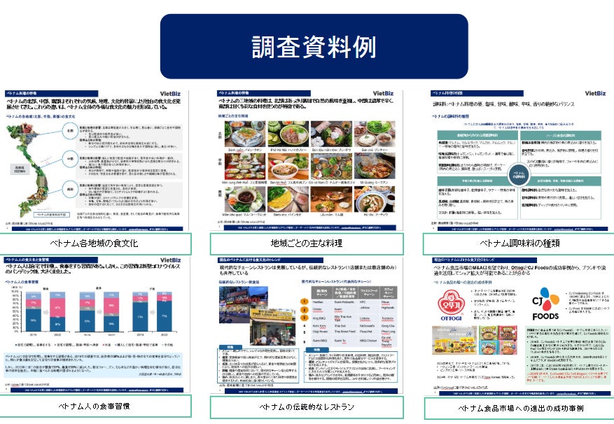 本レポートでは、ベトナム政府機関、現地報道機関、企業の統計データをもとに、食文化の変遷や消費者の行動を分析している。例えば、外食頻度の増加や、食品市場の成長率などのデータをもとに、今後の市場動向を予測。