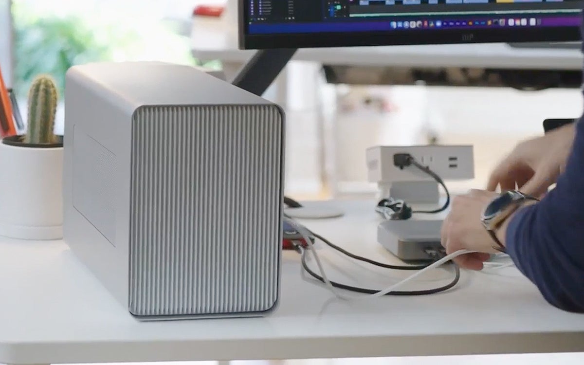 当製品は、最先端のクリエイターのために設計された、世界初のGaN電源一体型Thunderbolt 4ハブです。3つのThunderbolt 4ポートを搭載。40Gbpsデータ転送に32GbpsのPCleデータ転送、デュアル4K 60Hz/シングル8K 30Hzのディスプレイ接続が可能です。最新のGaN技術で電源部を小型化するとともに、スリムなAC電源ケーブルを採用し、最大96Wで充電可能です。ワークスペースの場所を取らず、携帯性にも優れた製品です。