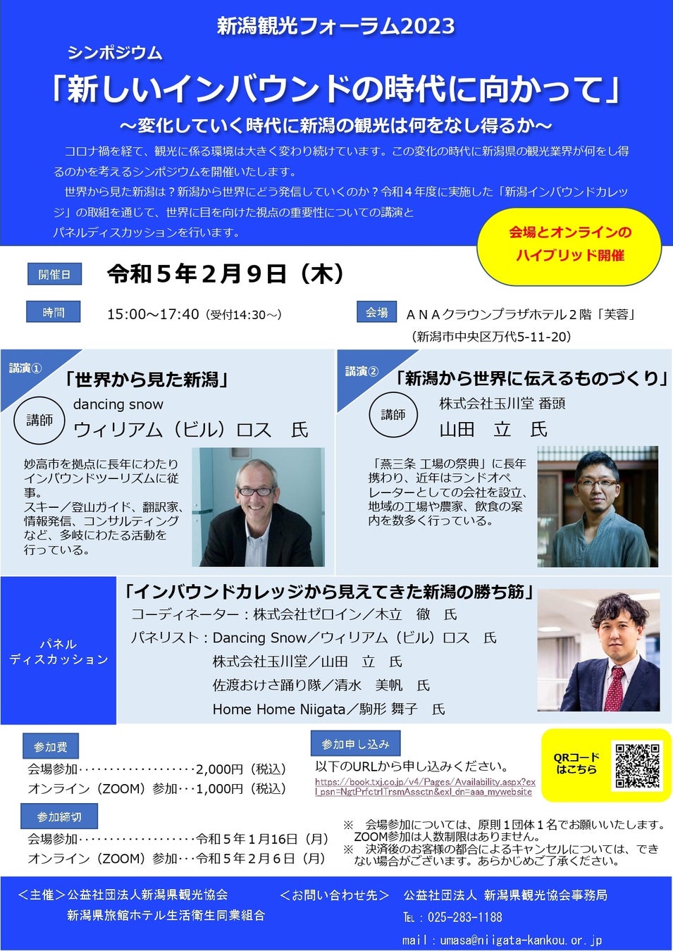 【申し込み受付中】「新潟観光フォーラム2023」 シンポジウム~新しいインバウンドの時代に向かって~ を開催します