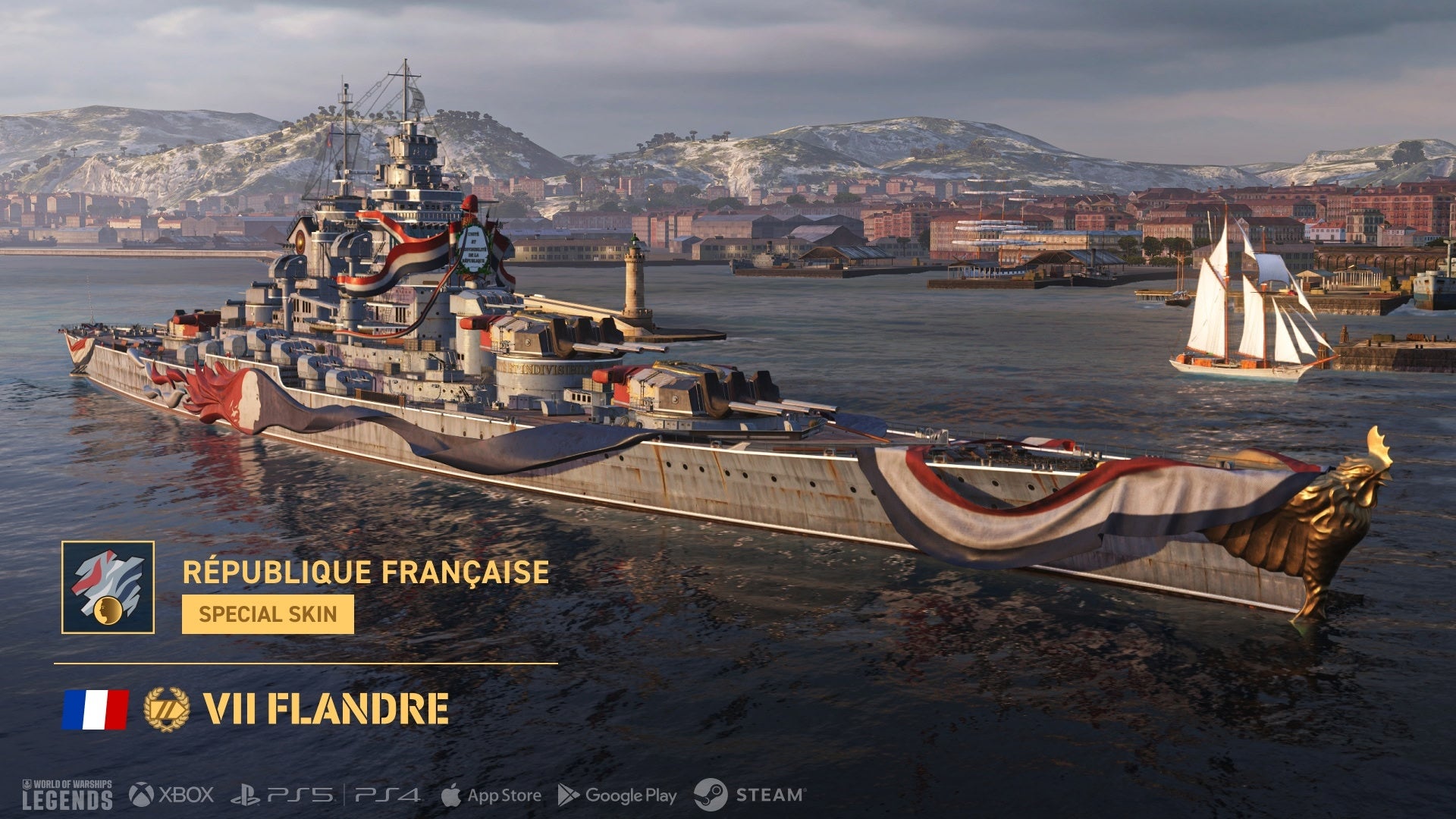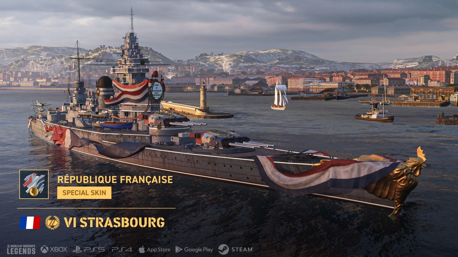新たなフランス海軍イベントが開催され、特別なフランス戦艦クレートを含むテーマに合わせた褒賞が登場します。これらのクレートには、フランス戦艦「Normandie」「Lyon」「Richelieu」「Alsace」「Bourgogne」「Strasbourg」「Flandre」のスキンが収録されているほか、プレミアム戦艦「Strasbourg」または「Flandre」本体がドロップするチャンスもあります。