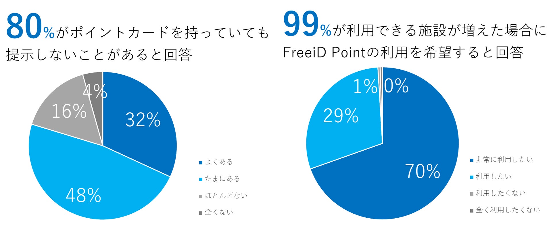 また、普段からポイントカードを持っていても提示しない人は80%にも上ることがわかり、顔認証によるポイントシステム「FreeiD Point」の利用に対して好意的と回答した人は99%という非常に高い結果となりました。
