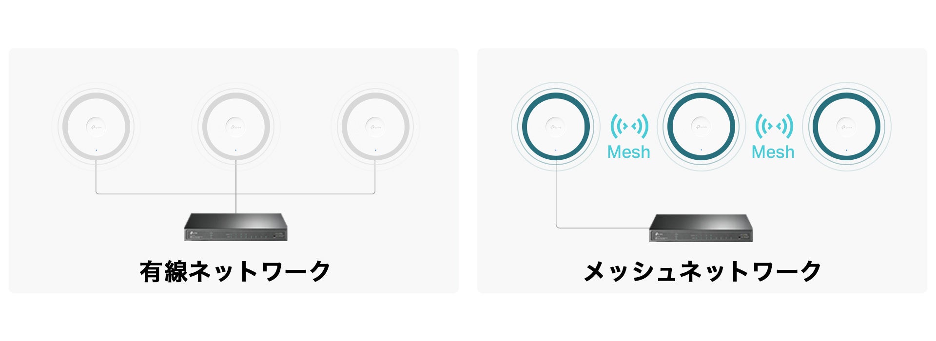 ・Omadaメッシュ・シームレスローミング機能:複数のアクセスポイント間をワイヤレスで繋ぎ、高い拡張性と柔軟な展開を実現*5