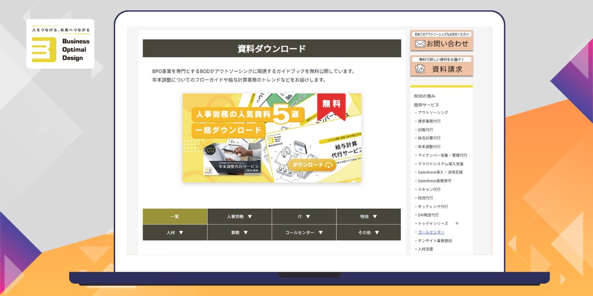BOD、アウトソーシングのお役立ち資料一覧ページをリニューアル|業務カテゴリ別での表示が可能に!