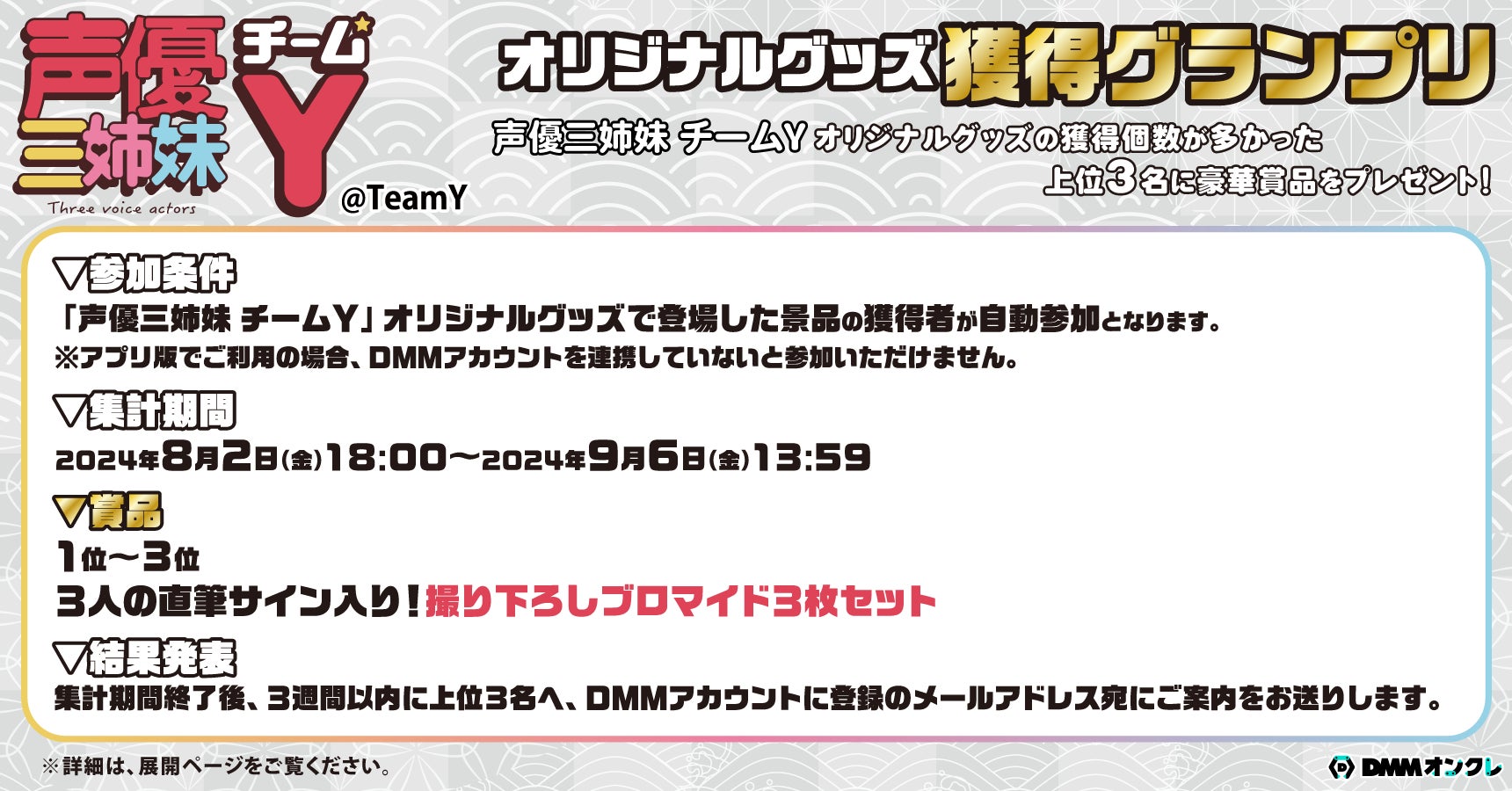 ※「声優三姉妹【チームY】」オリジナルグッズの獲得者が自動参加となります