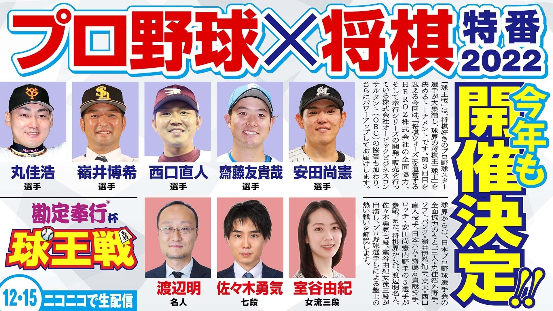 プロ野球最強将棋王決定戦「勘定奉行杯 球王戦」開催決定 12/15 18時~、ニコニコ生放送で独占生中継!